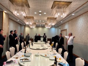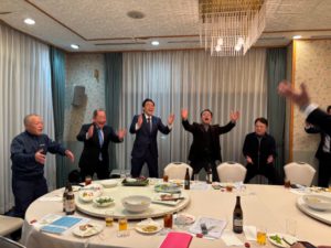 吉村はるか氏の衆議院議員の当選と本日お集りの皆さんのご健勝と 次回総会の成功を祈念して一本締めで、